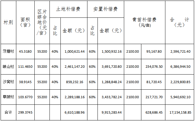 青苗补偿费、土地补偿费和安置补助费共计17,154,158.85元,由临空经济区直接支付给被征地村组。
