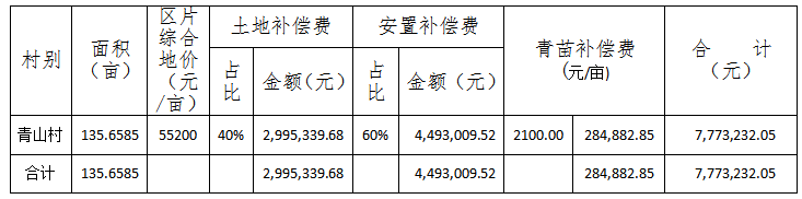 青苗补偿费、土地补偿费和安置补助费共计7,773,232.05元,由临空经济区直接支付给被征地村组