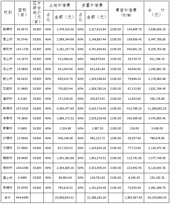 青苗补偿费、土地补偿费和安置补助费共计54,189,412.20元,由临空经济区直接支付给被征地村组。