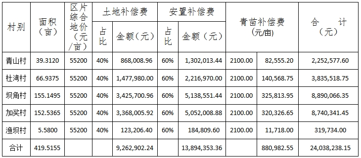 青苗补偿费、土地补偿费和安置补助费共计24,038,238.15元,由临空经济区直接支付给被征地村组。