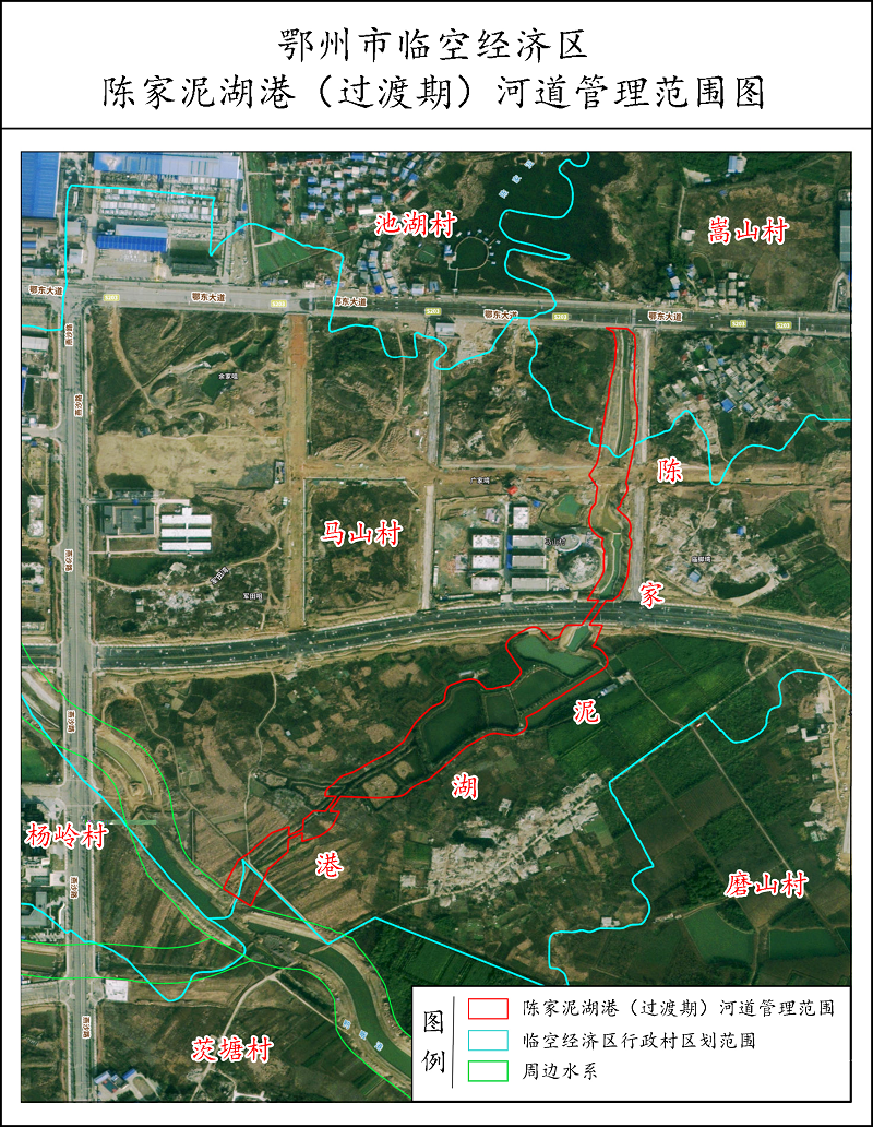 根据《中华人民共和国水法》《中华人民共和国防洪法》《中华人民共和国河道管理条例》等法律法规,按照《省人民政府办公厅关于印发<湖北省河湖长和水利工程划界确权工作方案>的通知》(鄂政办函〔2018〕106号)和《市水利和湖泊局市自然资源和规划局关于印发<鄂州市河湖和水利工程划界确权工作方案>的通知》(鄂州水利发〔2020〕5号),结我区陈家泥湖港实际,现将我区陈家泥湖港(过渡期)河道管理范围划定情况公告如下。