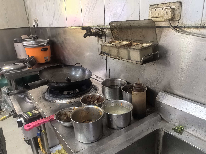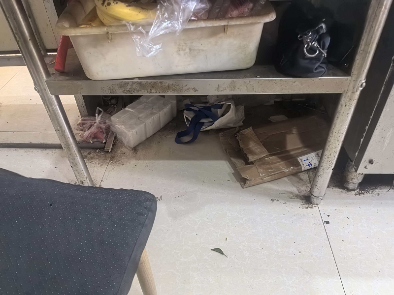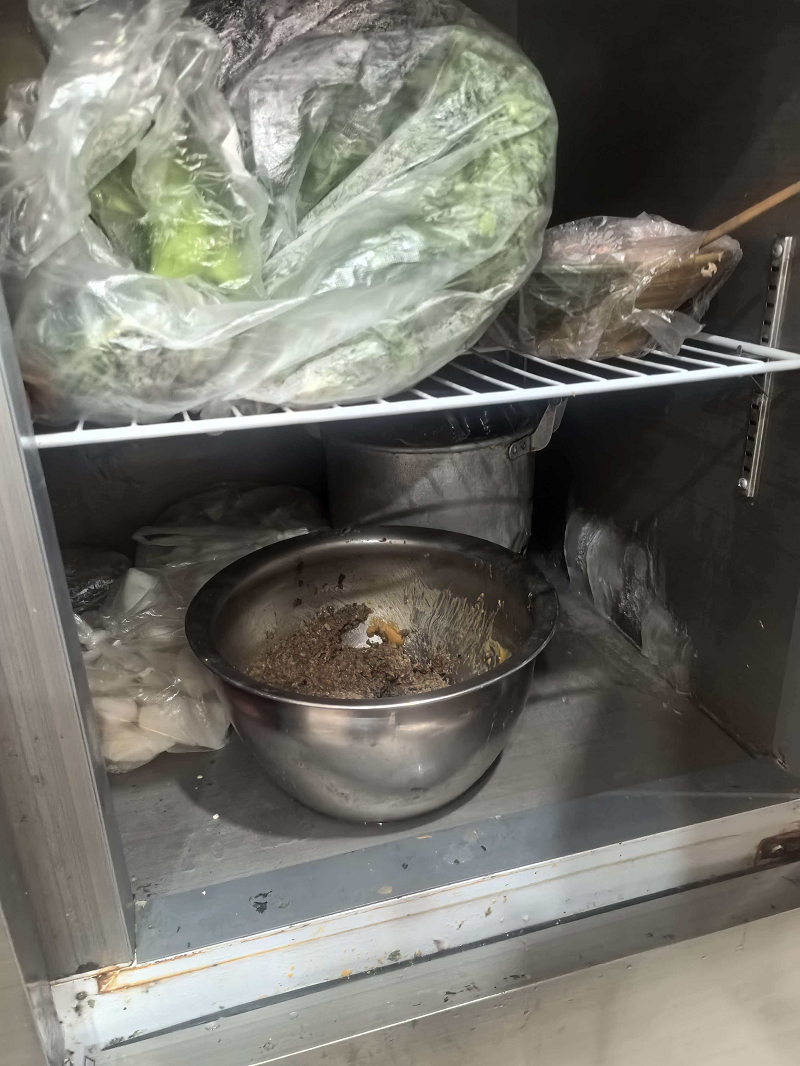 黑榜理由:后厨环境卫生杂乱,食材未离地隔墙存放,食材储存不规范。