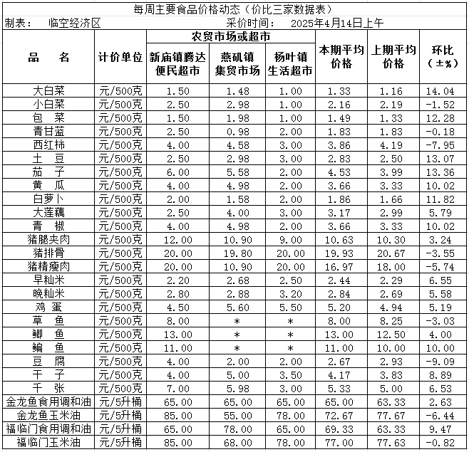 临空经济区2025年4月14日价比三家