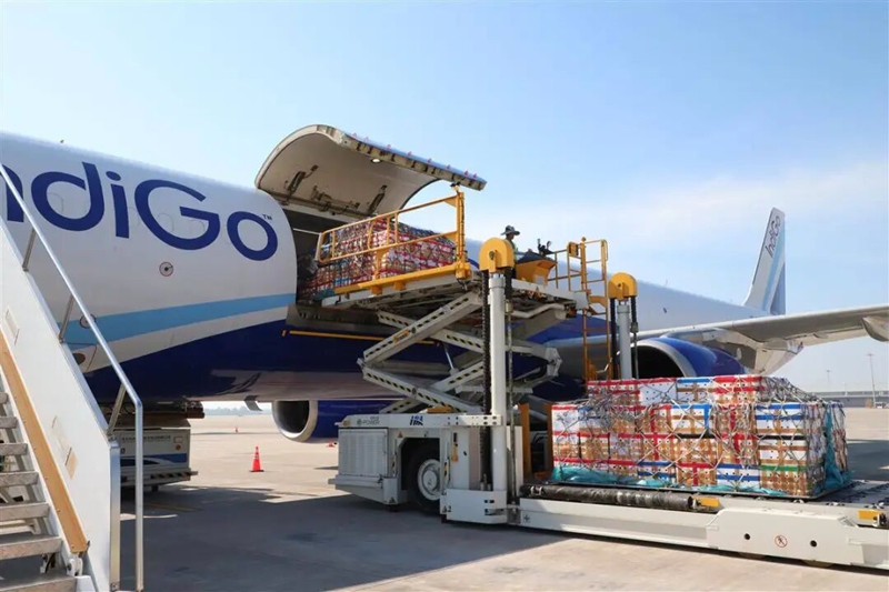 11月12日,一架满载电子产品、服装、药品等货物的印度靛蓝航空全货机,从鄂州花湖国际机场腾空而起。这标志着机场2025年国际货运航班正式突破一万架次,同比增长93.6%。