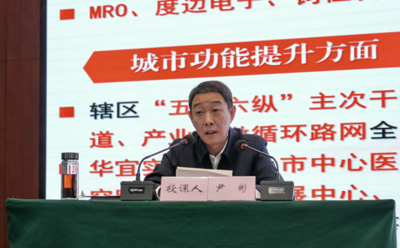 尹彬在辅导报告中回顾了“十四五”以来临空经济区取得的成绩。在花湖机场的强力驱动下,全区经济社会发展实现跨越式增长:跨境电商产业园开园仅7个月累计注册企业419家,入驻企业81家,实现进出口额超3.31亿美元;“十四五”末较“十三五”末,全区GDP增长95%,进出口总额增长211倍,限上社零额增长594%,一般公共预算收入增长260%,固定资产投资增长165%,主要经济指标持续领跑全市,一座港产城融合的空港新城已初具雏形。这些实践成果的取得,根本在于习近平新时代中国特色社会主义思想的科学指引,为“十五五”时期接续奋斗奠定了坚实基础。