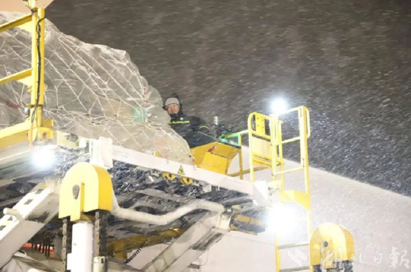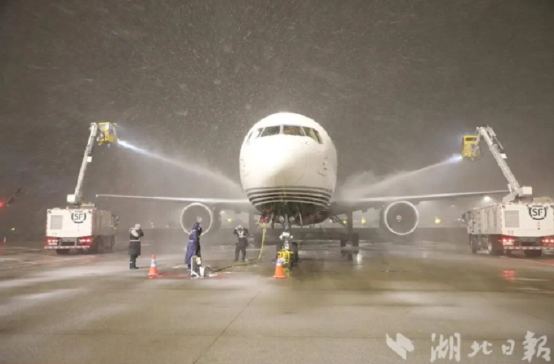 全力以赴应对冰雪天气 鄂州花湖机场安全起降航班百架次