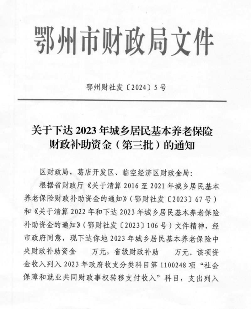 关于下达2023年城乡居民基本养老保险财政补助资金(第三批)的通知