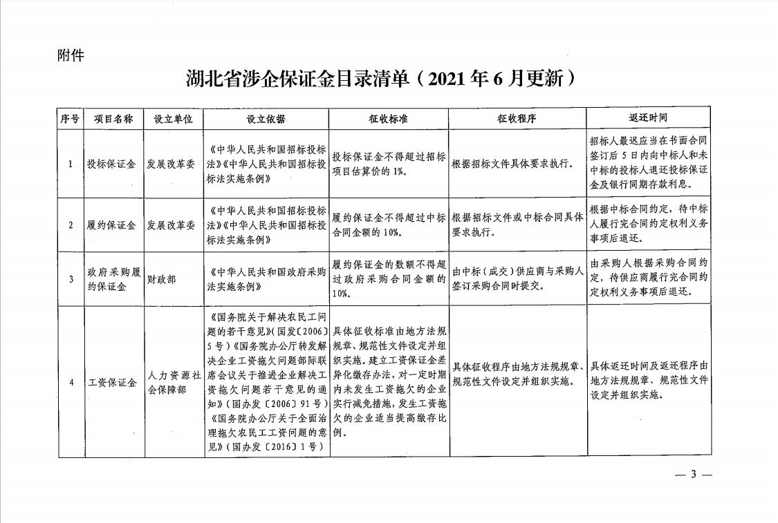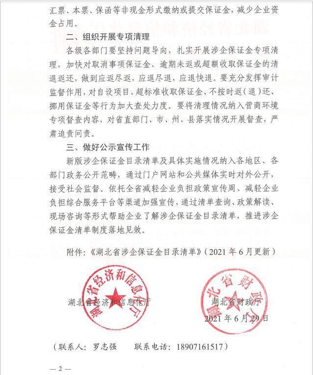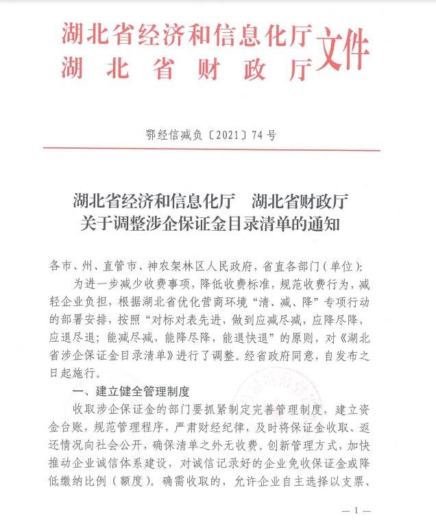 湖北省经济和信息化厅 湖北省财政厅 关于调整涉企保证金目录清单的通知