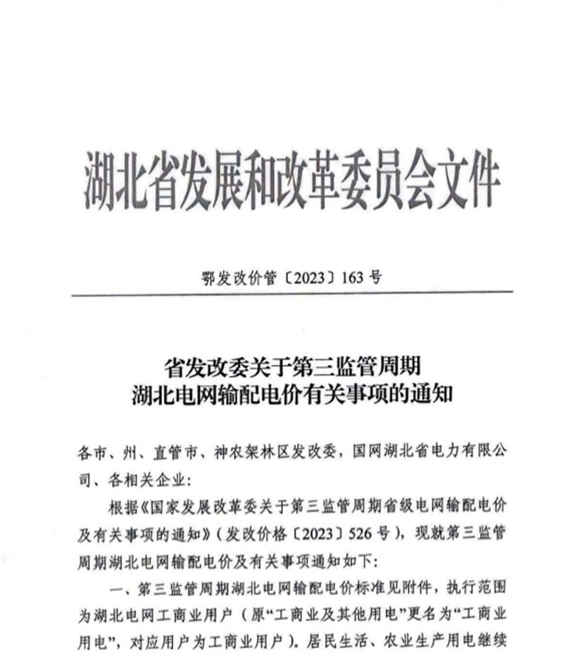 省发改委关于第三监管周期湖北电网输配电价有关事项的通知