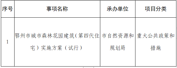 《鄂州市城市森林花园建筑(第四代住宅)实施方案(试行)》,为制定有关公共服务、市场监管、社会管理、环境保护等方面的重大公共政策和措施。该方案的出台可以更好激发房地产市场活力,提振市场信心,贯彻生态文明思想,促进我市房地产市场平稳健康发展。