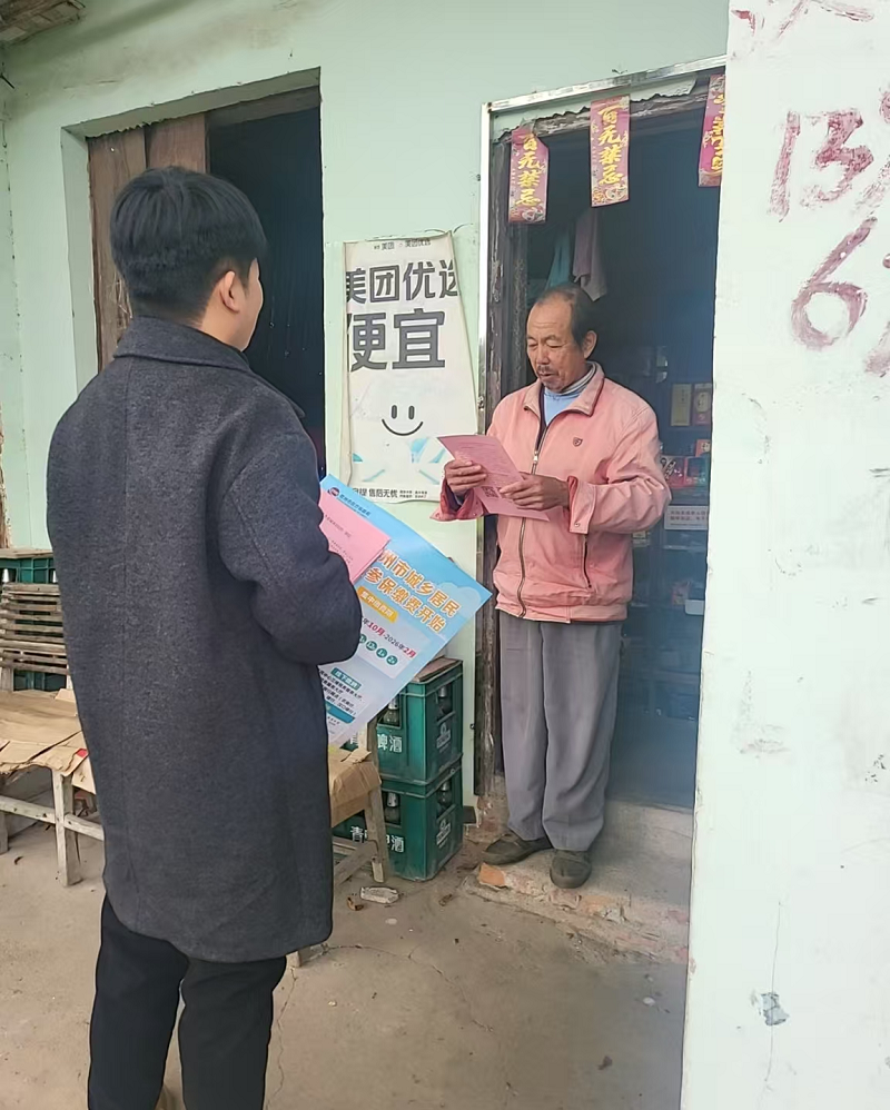 1,2025年10月21日,村工作人员下组发放医保政策宣传单。