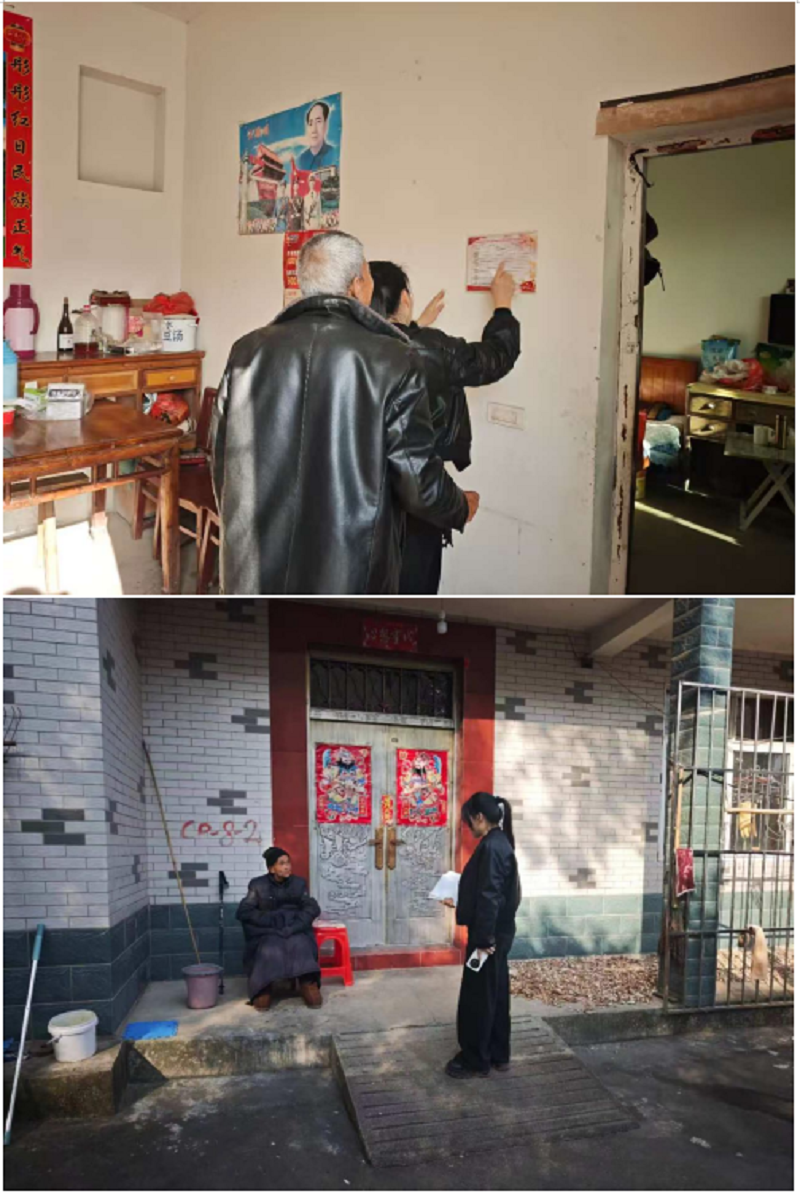 2025年12月1日,草陂村村干部下组入户走访脱贫户,张贴明白牌,与脱贫户讲解政策并告知落实情况。