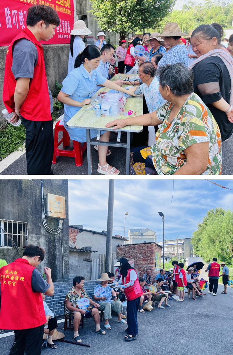 黄山村2025年8月4日,联合村志愿者、驻村辅警,沙窝卫生院,沙窝社工站,精心策划组织“夏日送清凉、政策惠民生”志愿活动。