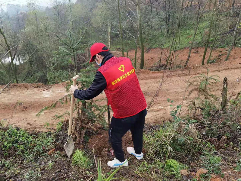 在植树现场,志愿者们纷纷挥动着手中的铁锹,有的挖坑、有的扶树、有的培土,个个热情高涨,成为春天里一道靓丽的风景。大家按照植树挖穴标准,采取“三埋二踩一提”的植树方法,挖坑、放苗、培土,将一棵棵树苗栽入土中。经过一个多小时的努力,30余颗树栽种到新湾村的路边上,在三月的春雨中奏响绿色的希望,为大地增添了一片生机勃勃的绿色。