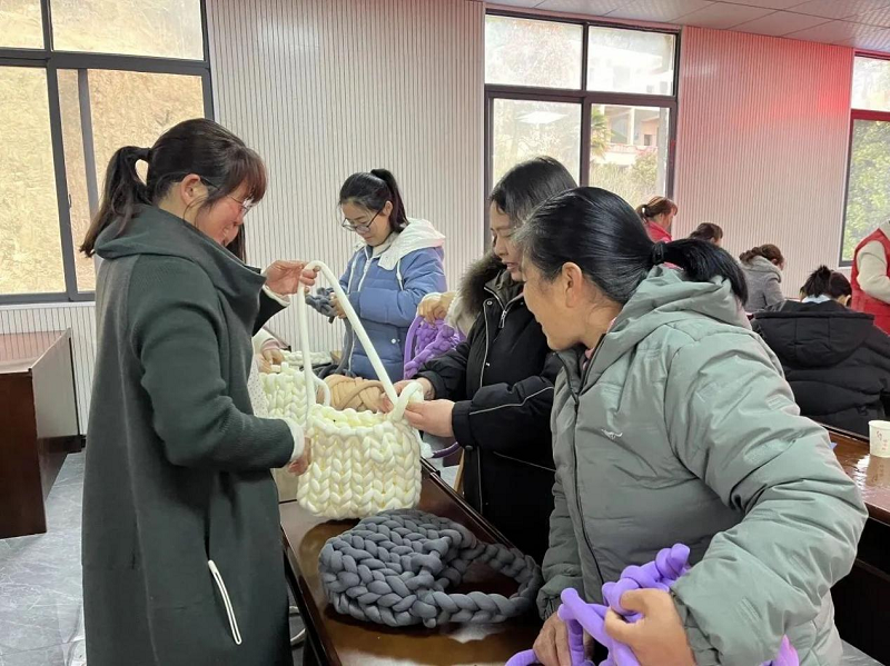 手工编织包环节,保团村文体协会志愿服务队技能老师,首先给大家讲解了手工编织包的基本要领和技巧,妇女同胞们迫不及待的动手实践,大部分参加活动的姐妹都是很有经验的高手,很快就按照步骤完成了编织作品,还有的姐妹在样品的基础上加入了自己的想法,最后一件件漂亮的成品呈现在了大家眼前,成就感满满。