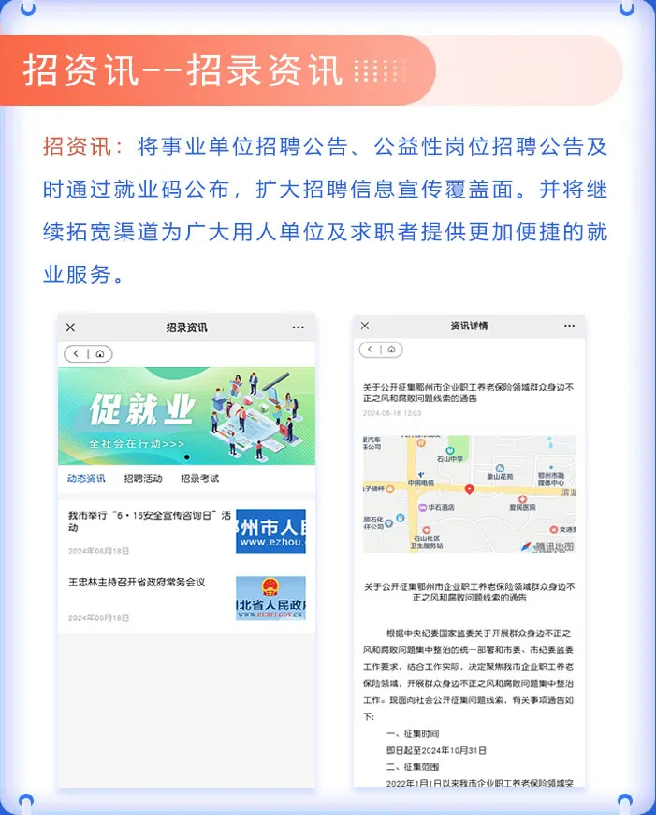 招资讯链接鄂州市人社局官网,汇集招聘活动、招考信息、动态资讯等内容,及时了解最新人事人才招录信息,抓住每一次“上岸”机会。
