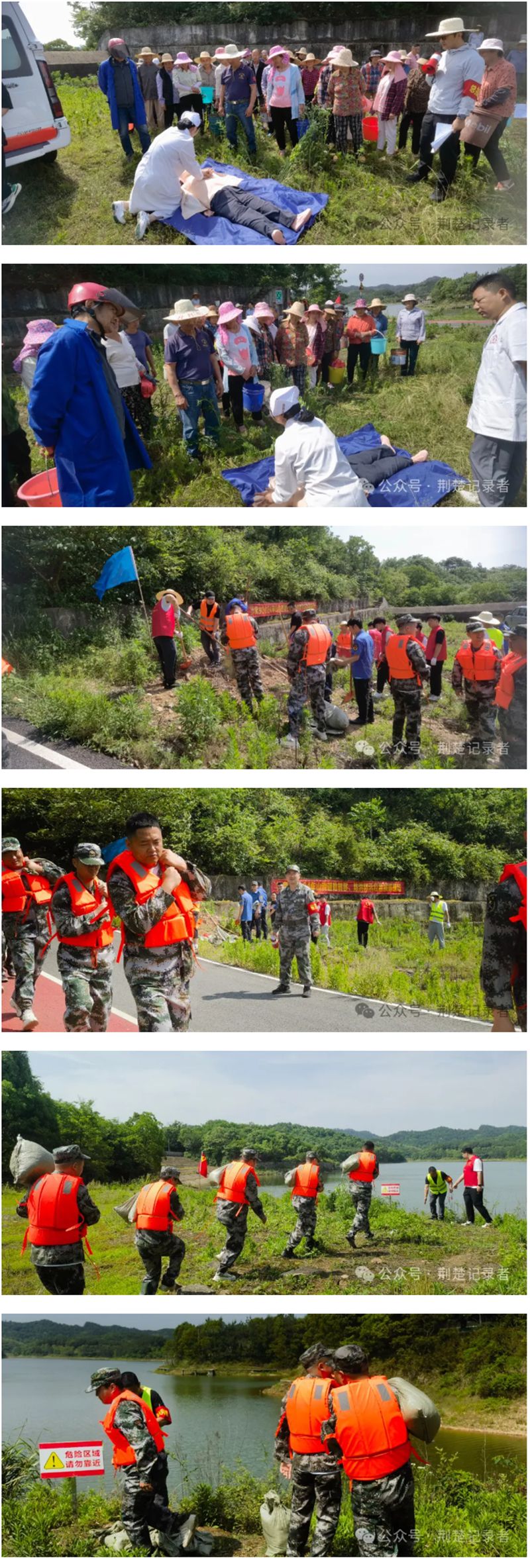2024年5月16日,鄂州市临空经济区沙窝乡组织卫生院、城管、派出所、各村民兵连长、保团村全体村干部,在黄龙水库组织山洪灾害应急演练活动。