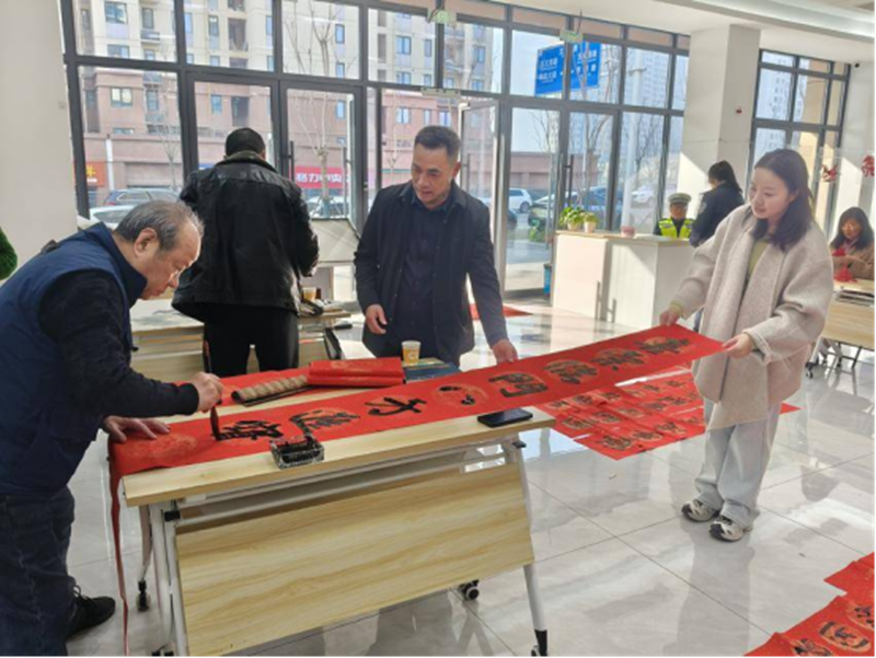 “请帮我写一副健康平安”“能为我孙子剪一只小老虎吗?”居民们的热情让艺术家们应接不暇。与此同时,温暖也在社区之外延续——由社区工作人员和村干部组成的“送福小分队”,带着慰问品和现场创作的书画作品,穿行于乡间小路,走进特殊群体家庭。