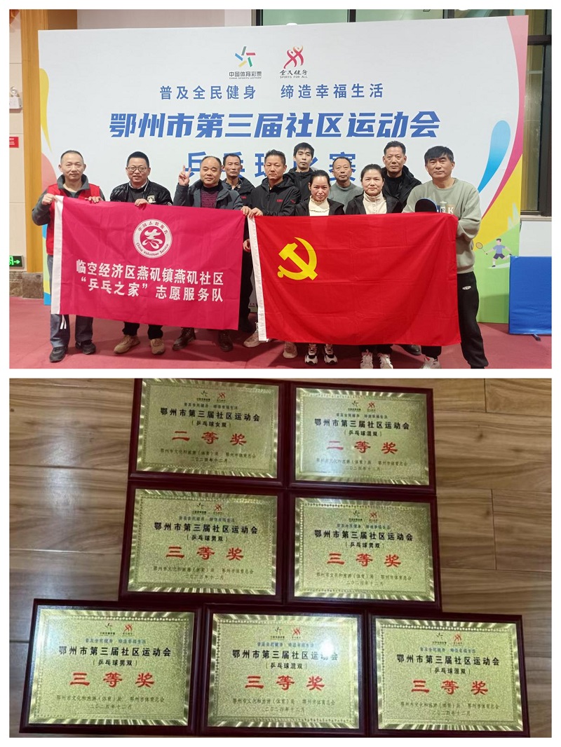 本次全市社区运动会吸引了众多社区代表队参与,竞争异常激烈。燕矶社区乒乓之家志愿服务队的参赛队员在比赛中展现了不俗的实力,队员们个个精神饱满,斗志昂扬,凭借默契的配合和出色的战术运用,斩获了女子双打二等奖、混合双打二等奖、男子双打三等奖等七个奖项。