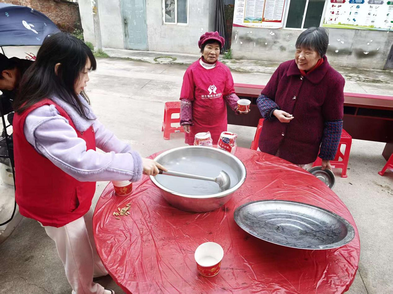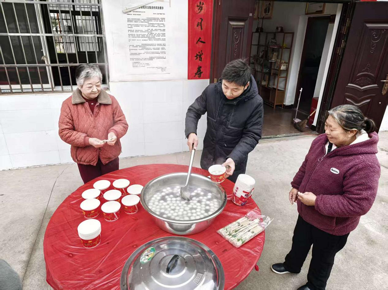 活动现场,团山村工作人员与志愿者为到来的老人打上一碗碗热气腾腾的汤圆,老人们围坐一起,吃汤圆、唠家常,展现了浓郁的节日氛围。