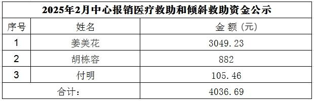 2025年2月中心报销医疗救助和倾斜救助资金公示