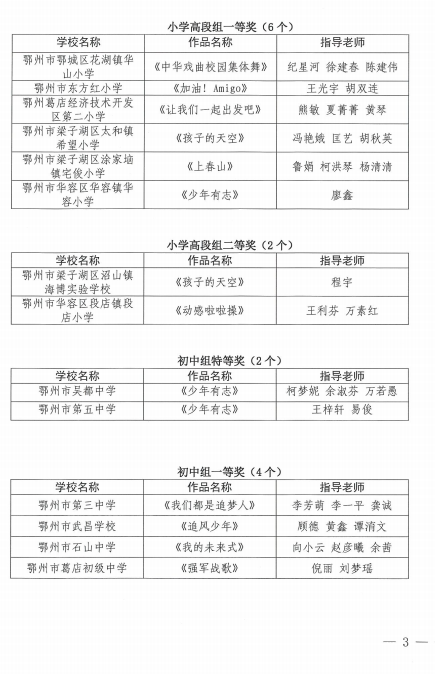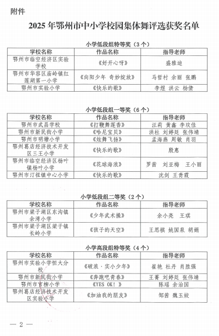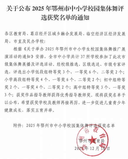 关于公布2025年鄂州市中小学校园集体舞评选获奖名单的通知