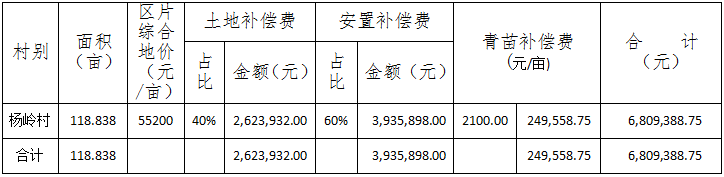 青苗补偿费、土地补偿费和安置补助费共计6,809,388.75元,由临空经济区直接支付给被征地村组。