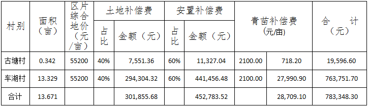 青苗补偿费、土地补偿费和安置补助费共计783,348.30元,由临空经济区直接支付给被征地村组。