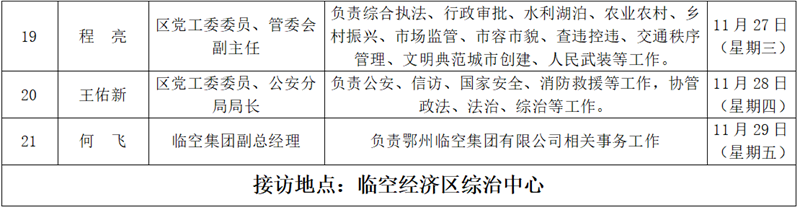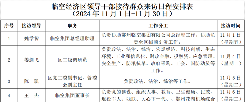 听民意、解民忧!临空经济区领导干部接待群众来访日程安排公告