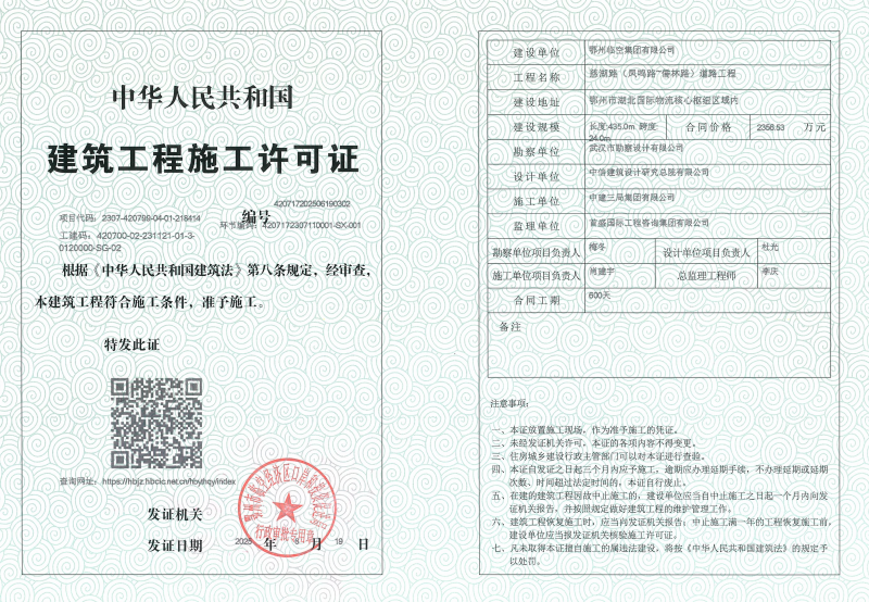 慈湖路(凤鸣路~儒林路)道路工程 建筑工程施工许可证